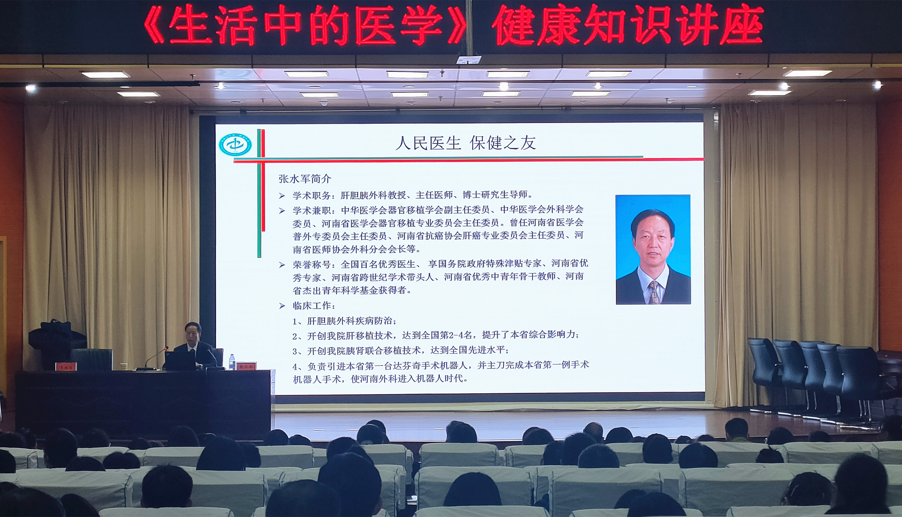 为贯彻落实习近平总书记健康中国建设行动,引导广大教职工建立正确的健康观,11月4日,bet36体育在线工会特邀郑州大学第一附属医院教授、主任医师,博士生导师张水军在图书馆学术报告厅作专题健康讲座,副院长高金星、潘春彩和300余名教职工参加了讲座。讲座由校工会副主席、女职工委员会主任常桂荣主持。